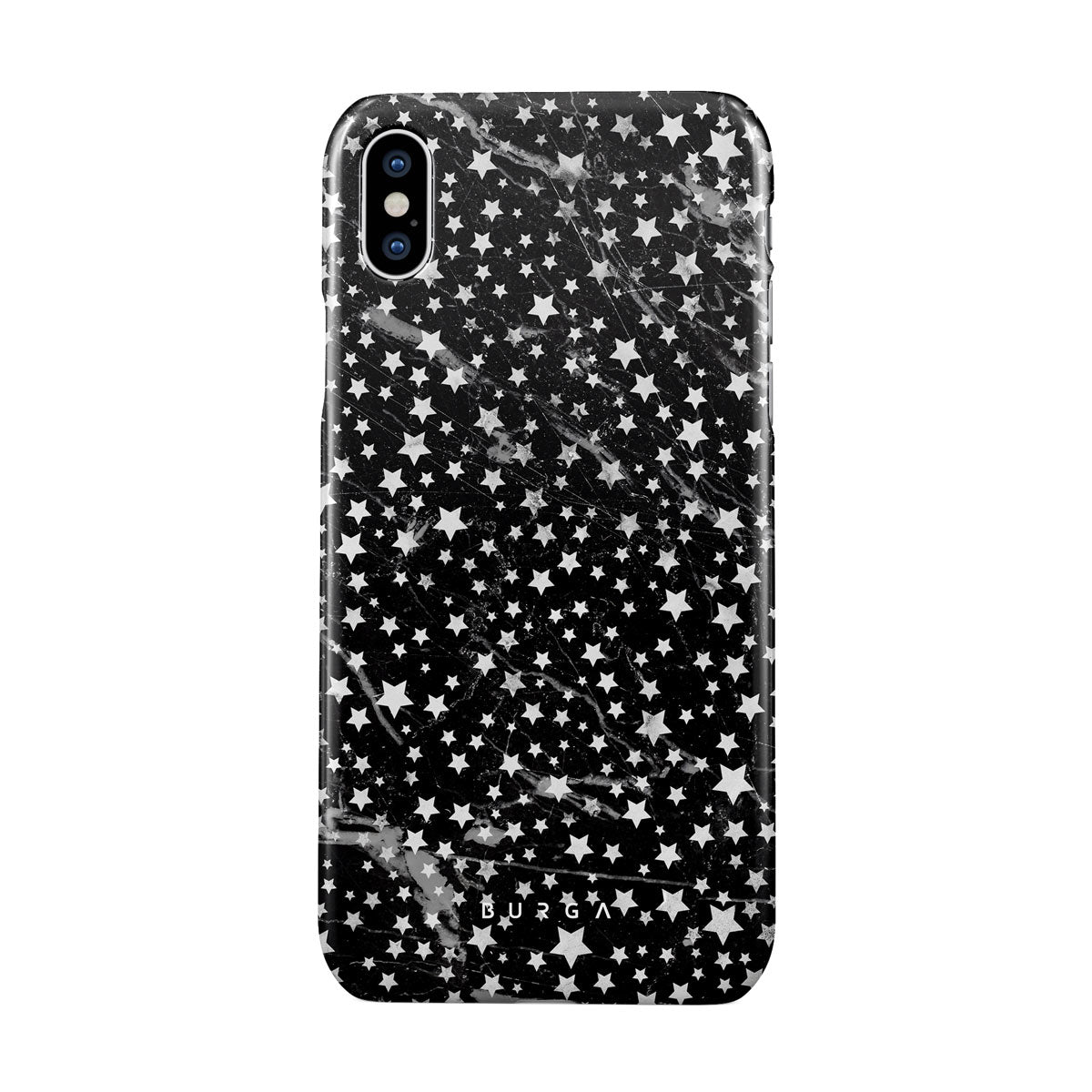 iPhone XS Max phone case is inspired by the sky above us. Here the charming star pattern meets with a trendy black and white marble. Add the unique combination to your wardrobe and transform your protective phone case into a fashion accessory.