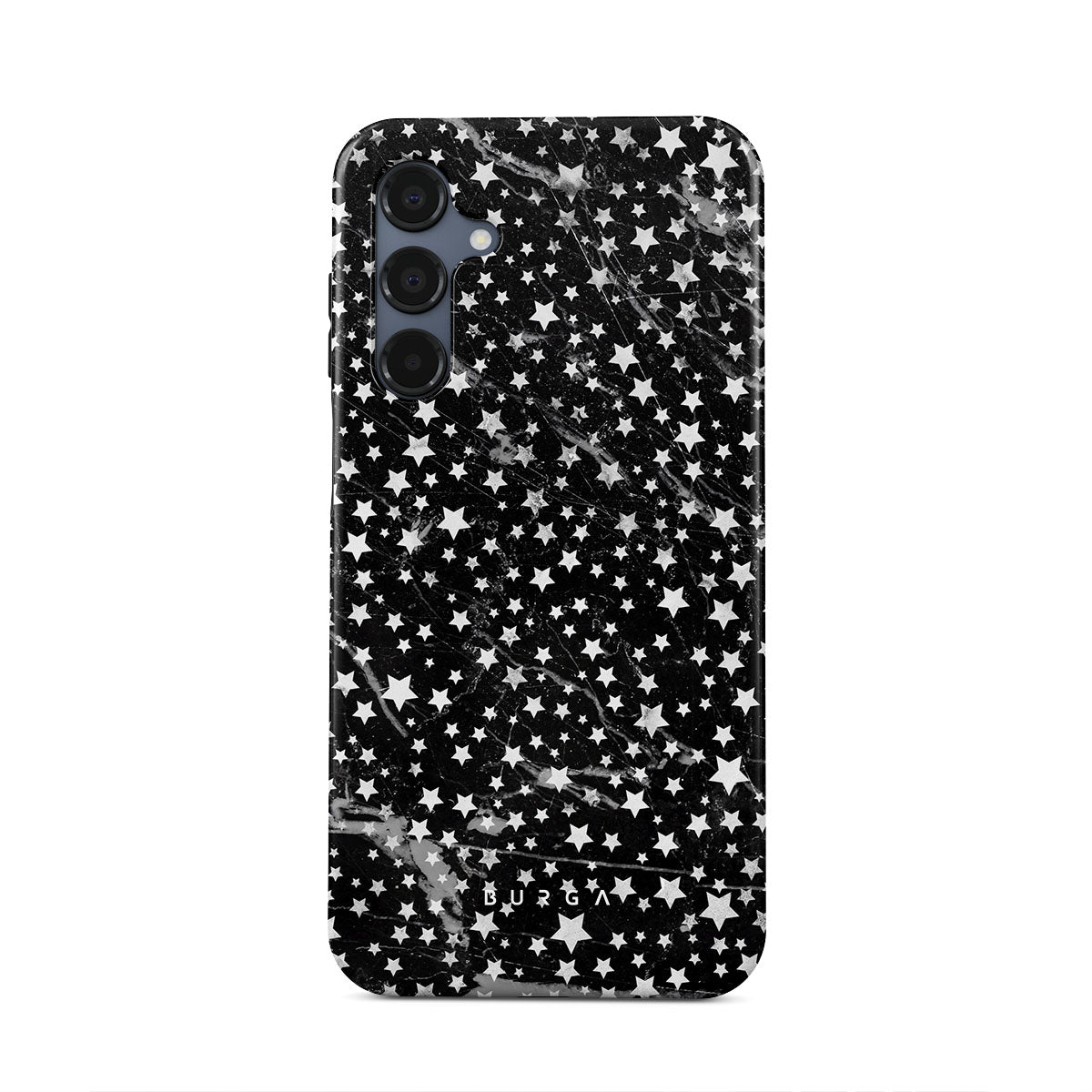 Samsung Galaxy A16 phone case is inspired by the sky above us. Here the charming star pattern meets with a trendy black and white marble. Add the unique combination to your wardrobe and transform your protective phone case into a fashion accessory.