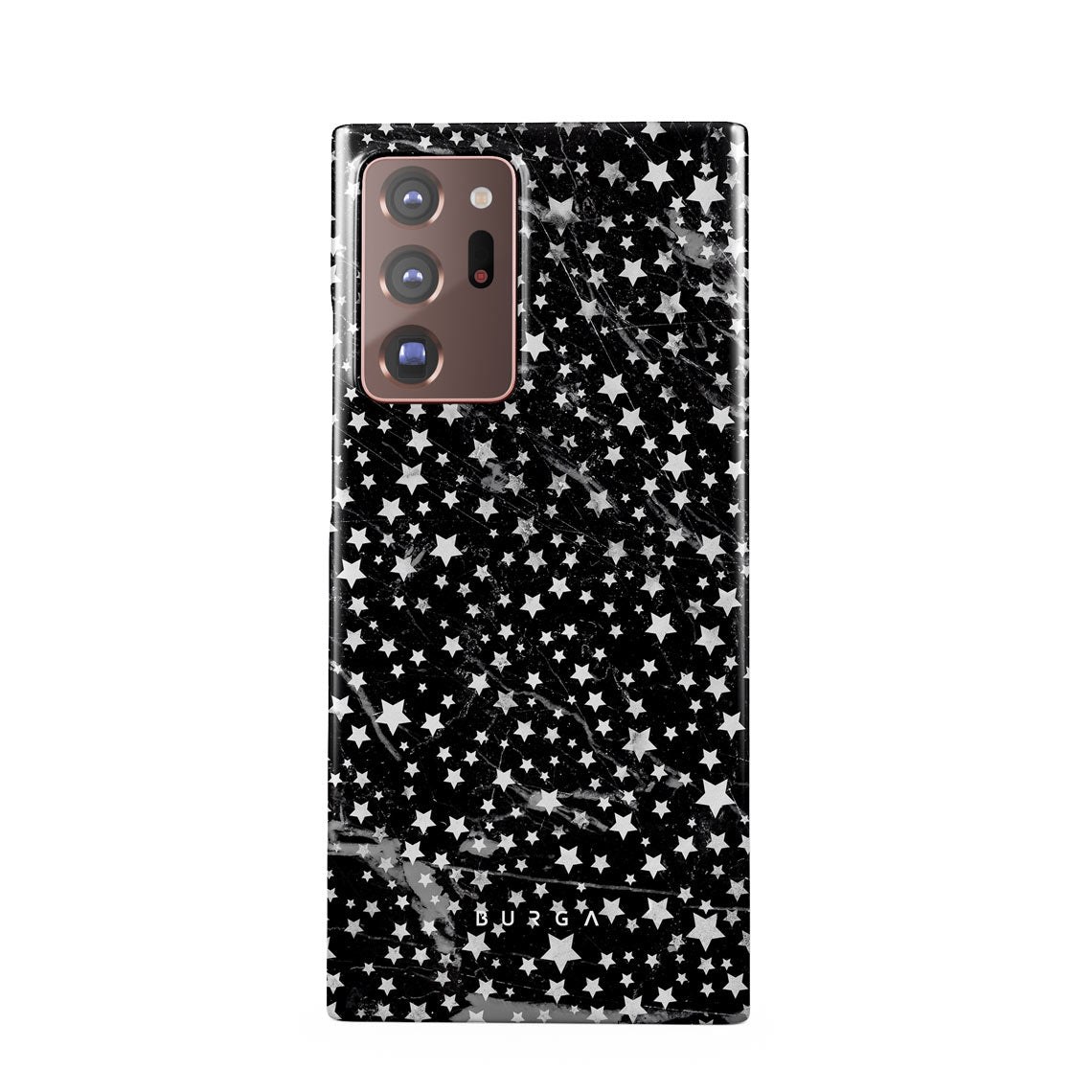 Samsung Galaxy Note 20 Ultra 4G / 5G phone case is inspired by the sky above us. Here the charming star pattern meets with a trendy black and white marble. Add the unique combination to your wardrobe and transform your protective phone case into a fashion accessory.
