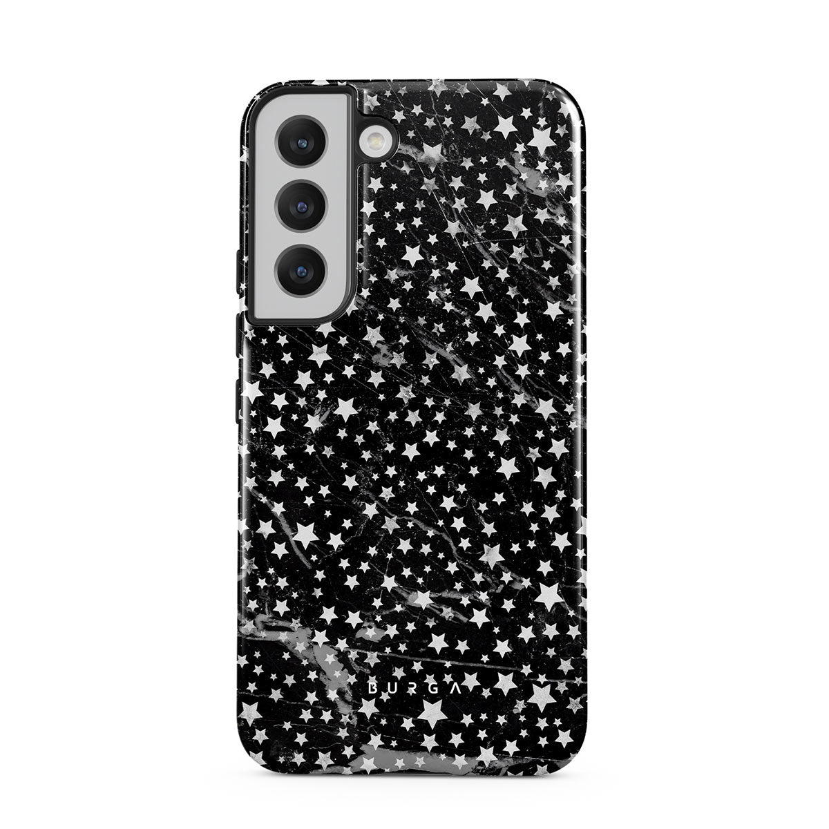 Samsung Galaxy S22 phone case is inspired by the sky above us. Here the charming star pattern meets with a trendy black and white marble. Add the unique combination to your wardrobe and transform your protective phone case into a fashion accessory.