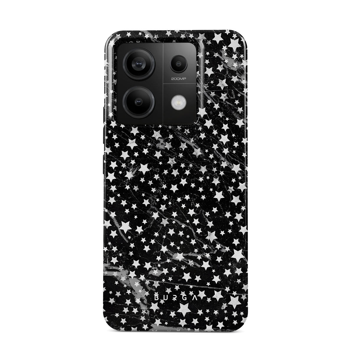Xiaomi Redmi Note 13 Pro 5G phone case is inspired by the sky above us. Here the charming star pattern meets with a trendy black and white marble. Add the unique combination to your wardrobe and transform your protective phone case into a fashion accessory.