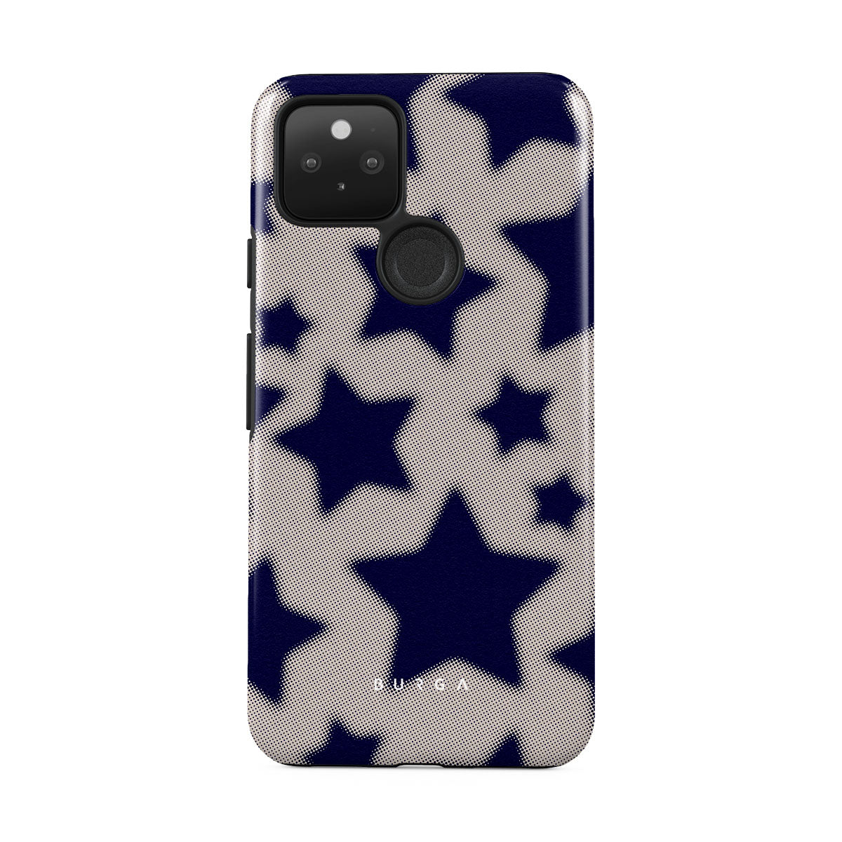 Rock a touch of '90s nostalgia with the Starstruck Google Pixel 5 phone case design. Its nude background is scattered with bold blue stars; each star hints at stories of hope and youthful dreams, blending simplicity with depth.