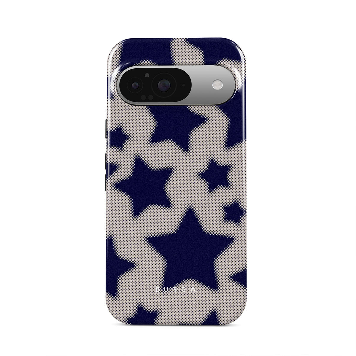 Rock a touch of '90s nostalgia with the Starstruck Google Pixel 9 phone case design. Its nude background is scattered with bold blue stars; each star hints at stories of hope and youthful dreams, blending simplicity with depth.