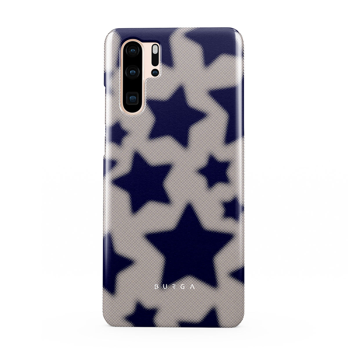 Rock a touch of '90s nostalgia with the Starstruck Huawei P30 Pro phone case design. Its nude background is scattered with bold blue stars; each star hints at stories of hope and youthful dreams, blending simplicity with depth.