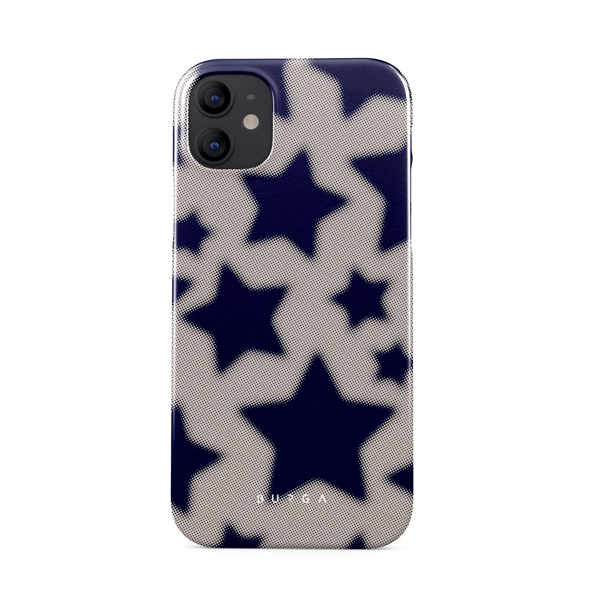 Rock a touch of '90s nostalgia with the Starstruck iPhone 12 Mini phone case design. Its nude background is scattered with bold blue stars; each star hints at stories of hope and youthful dreams, blending simplicity with depth.