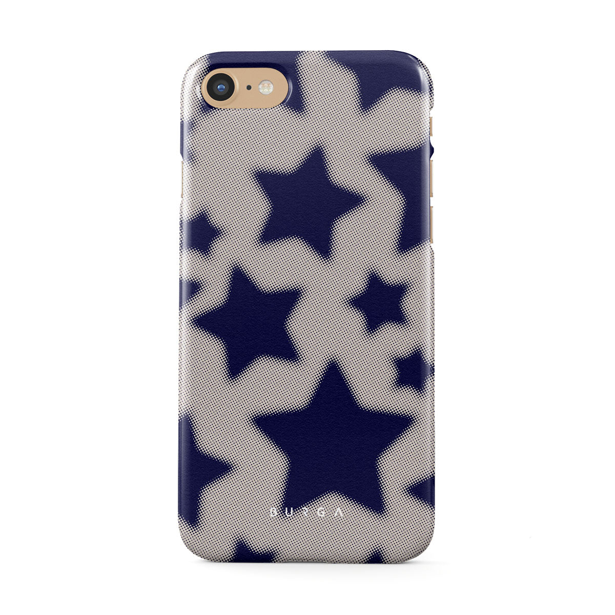 Rock a touch of '90s nostalgia with the Starstruck iPhone SE (2022) phone case design. Its nude background is scattered with bold blue stars; each star hints at stories of hope and youthful dreams, blending simplicity with depth.