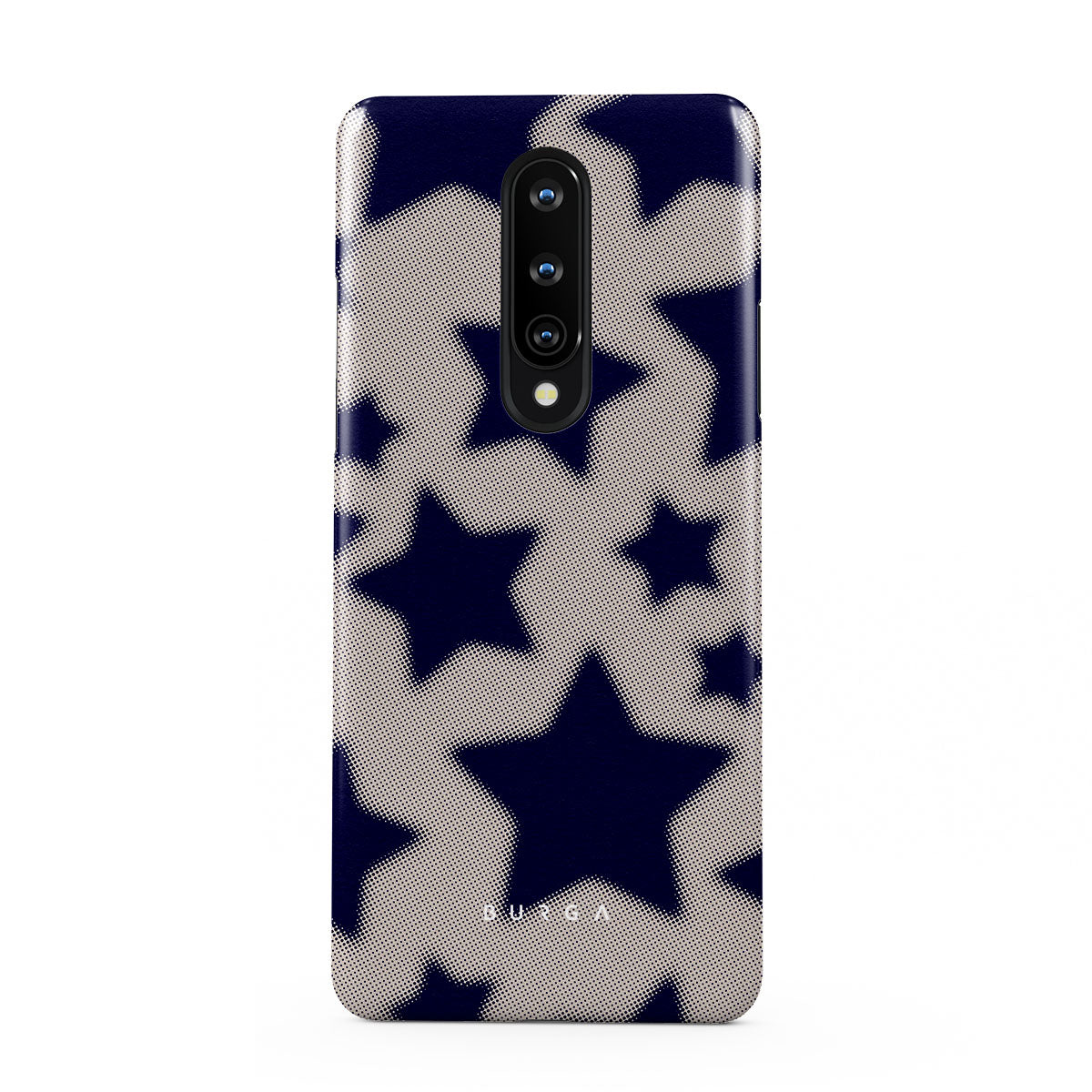Rock a touch of '90s nostalgia with the Starstruck OnePlus 8 phone case design. Its nude background is scattered with bold blue stars; each star hints at stories of hope and youthful dreams, blending simplicity with depth.