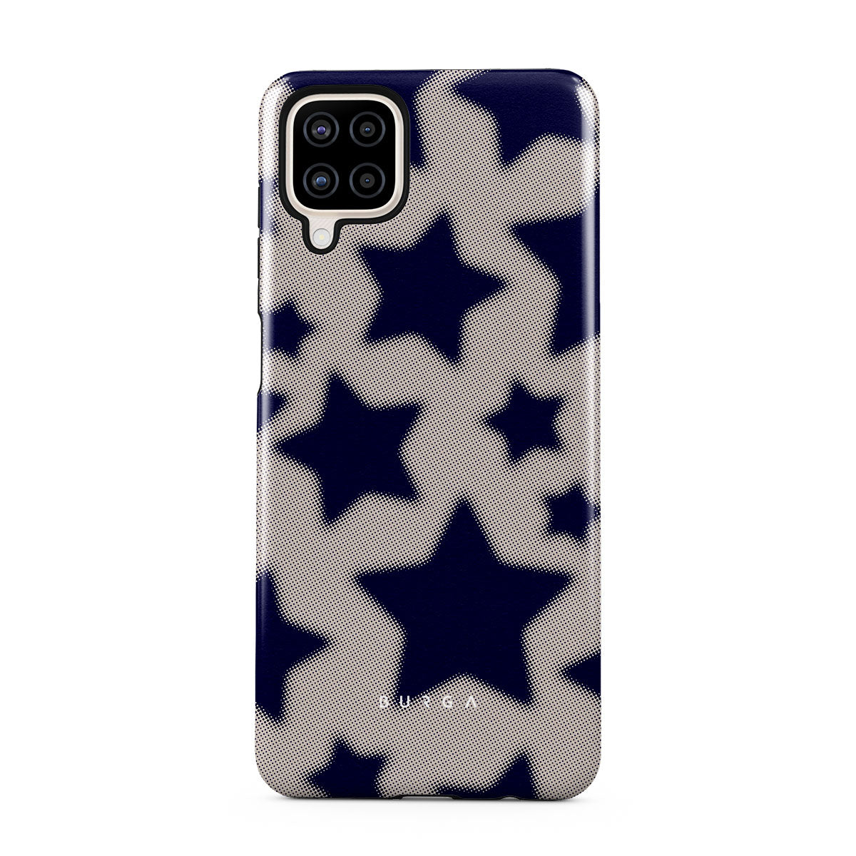 Rock a touch of '90s nostalgia with the Starstruck Samsung Galaxy A12 4G phone case design. Its nude background is scattered with bold blue stars; each star hints at stories of hope and youthful dreams, blending simplicity with depth.
