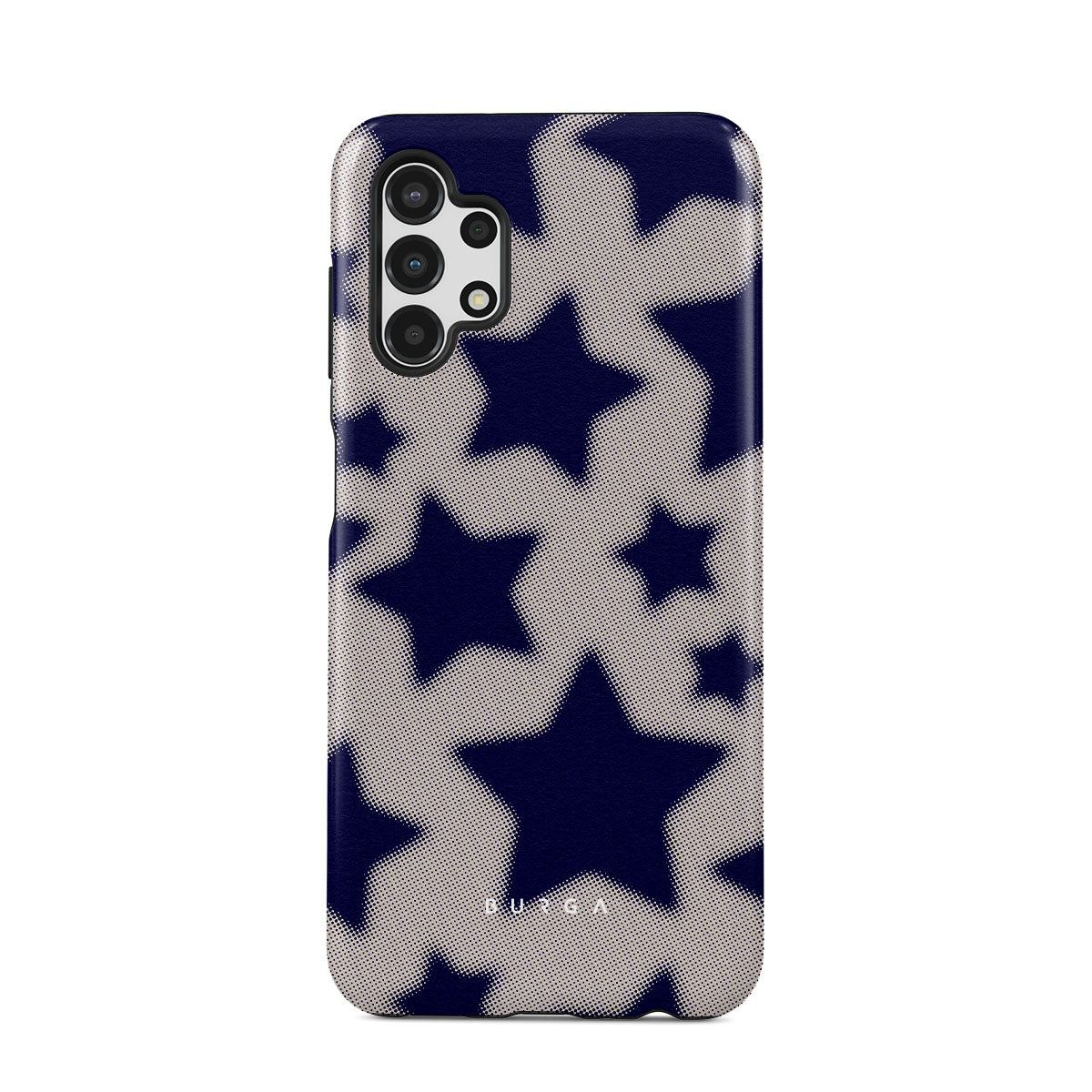 Rock a touch of '90s nostalgia with the Starstruck Samsung Galaxy A13 4G phone case design. Its nude background is scattered with bold blue stars; each star hints at stories of hope and youthful dreams, blending simplicity with depth.