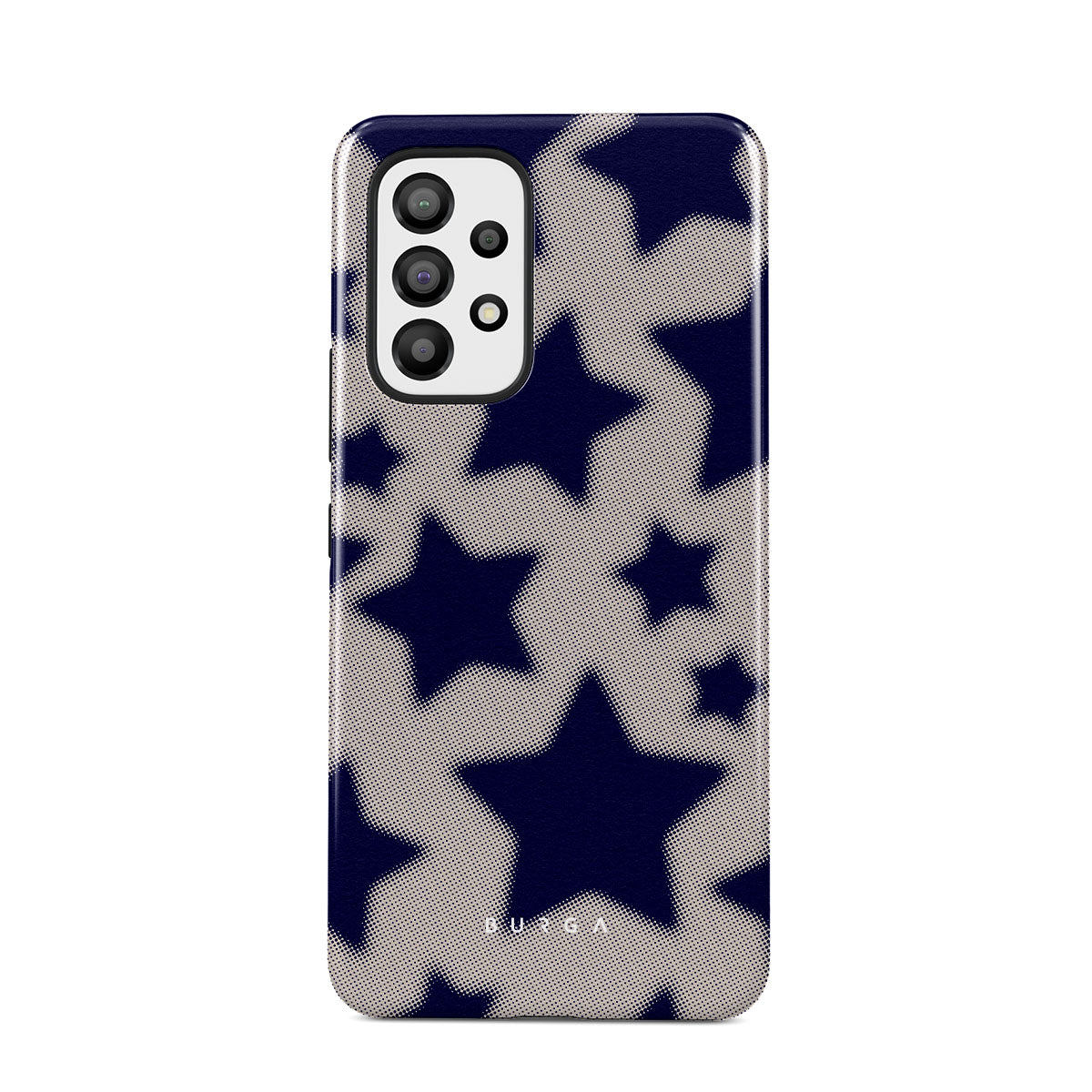 Rock a touch of '90s nostalgia with the Starstruck Samsung Galaxy A33 phone case design. Its nude background is scattered with bold blue stars; each star hints at stories of hope and youthful dreams, blending simplicity with depth.