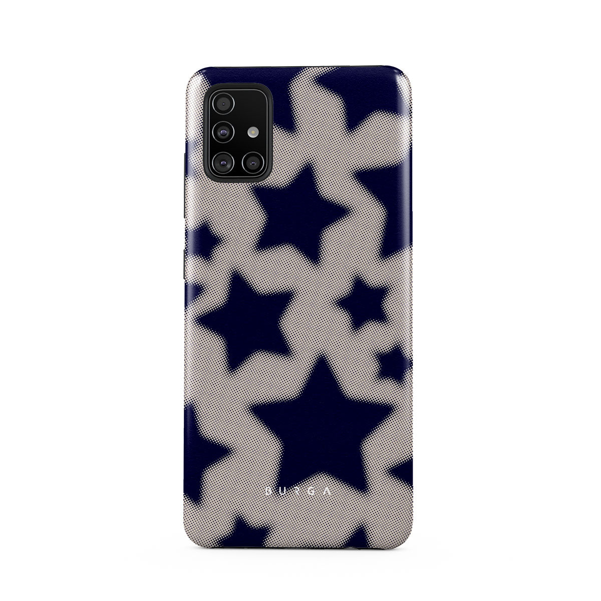 Rock a touch of '90s nostalgia with the Starstruck Samsung Galaxy A51 4G phone case design. Its nude background is scattered with bold blue stars; each star hints at stories of hope and youthful dreams, blending simplicity with depth.