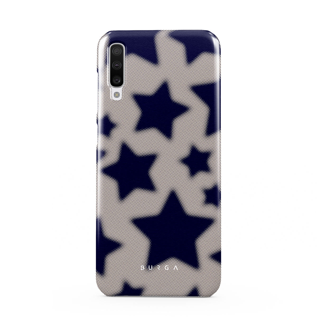 Rock a touch of '90s nostalgia with the Starstruck Samsung Galaxy A70 phone case design. Its nude background is scattered with bold blue stars; each star hints at stories of hope and youthful dreams, blending simplicity with depth.