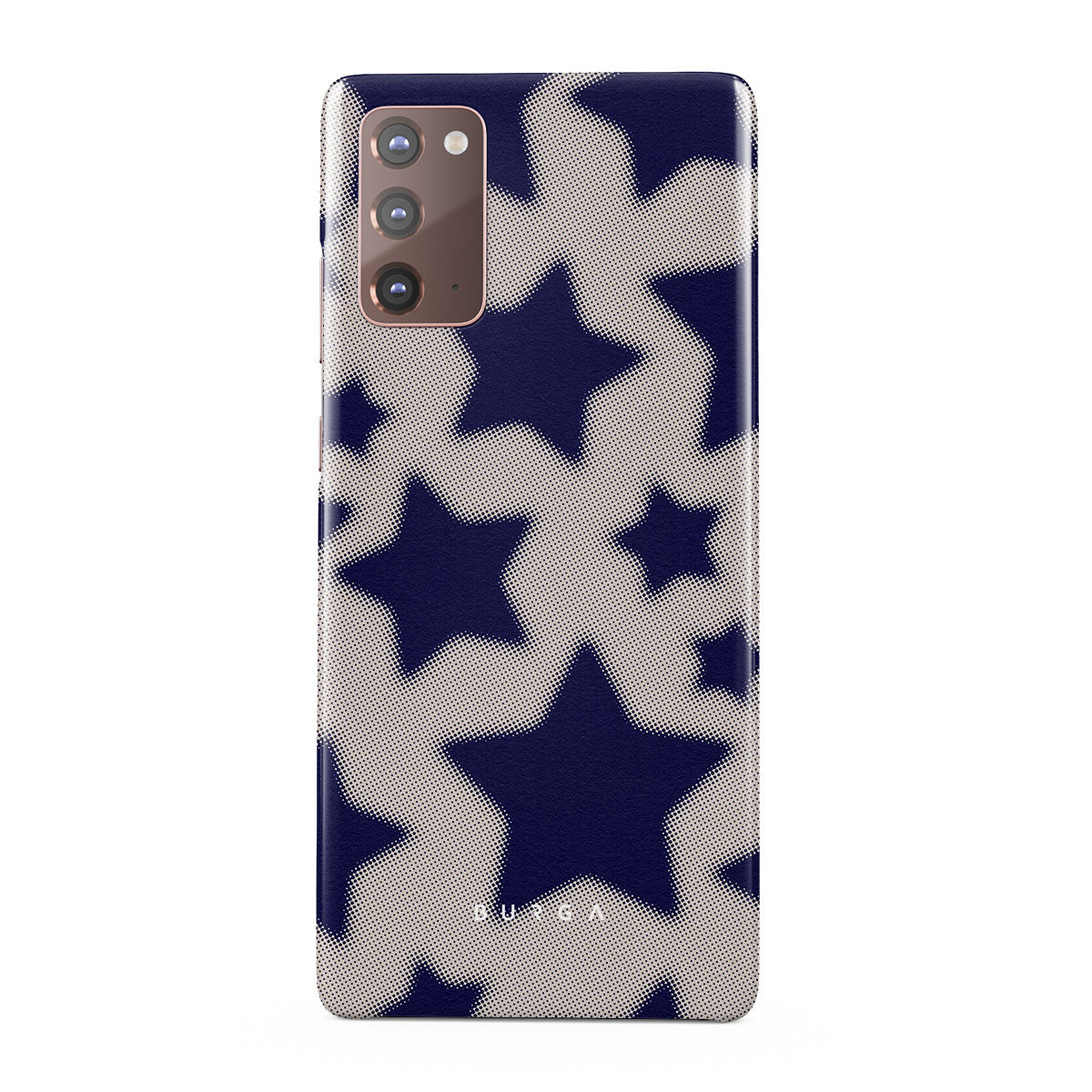 Rock a touch of '90s nostalgia with the Starstruck Samsung Galaxy Note 20 4G / 5G phone case design. Its nude background is scattered with bold blue stars; each star hints at stories of hope and youthful dreams, blending simplicity with depth.