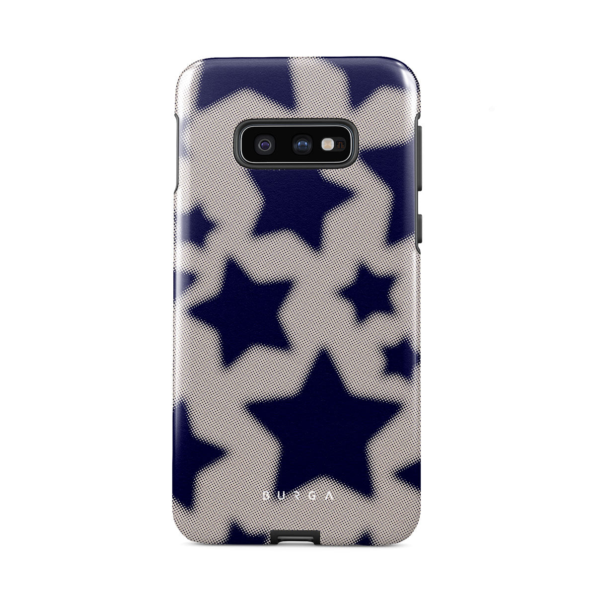Rock a touch of '90s nostalgia with the Starstruck Samsung Galaxy S10E phone case design. Its nude background is scattered with bold blue stars; each star hints at stories of hope and youthful dreams, blending simplicity with depth.