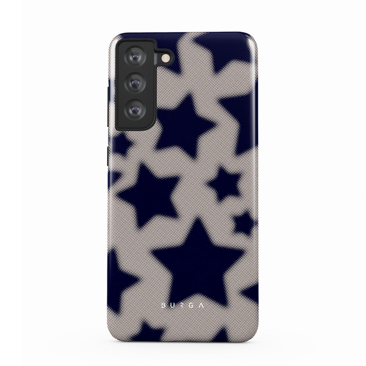 Rock a touch of '90s nostalgia with the Starstruck Samsung Galaxy S21 FE phone case design. Its nude background is scattered with bold blue stars; each star hints at stories of hope and youthful dreams, blending simplicity with depth.