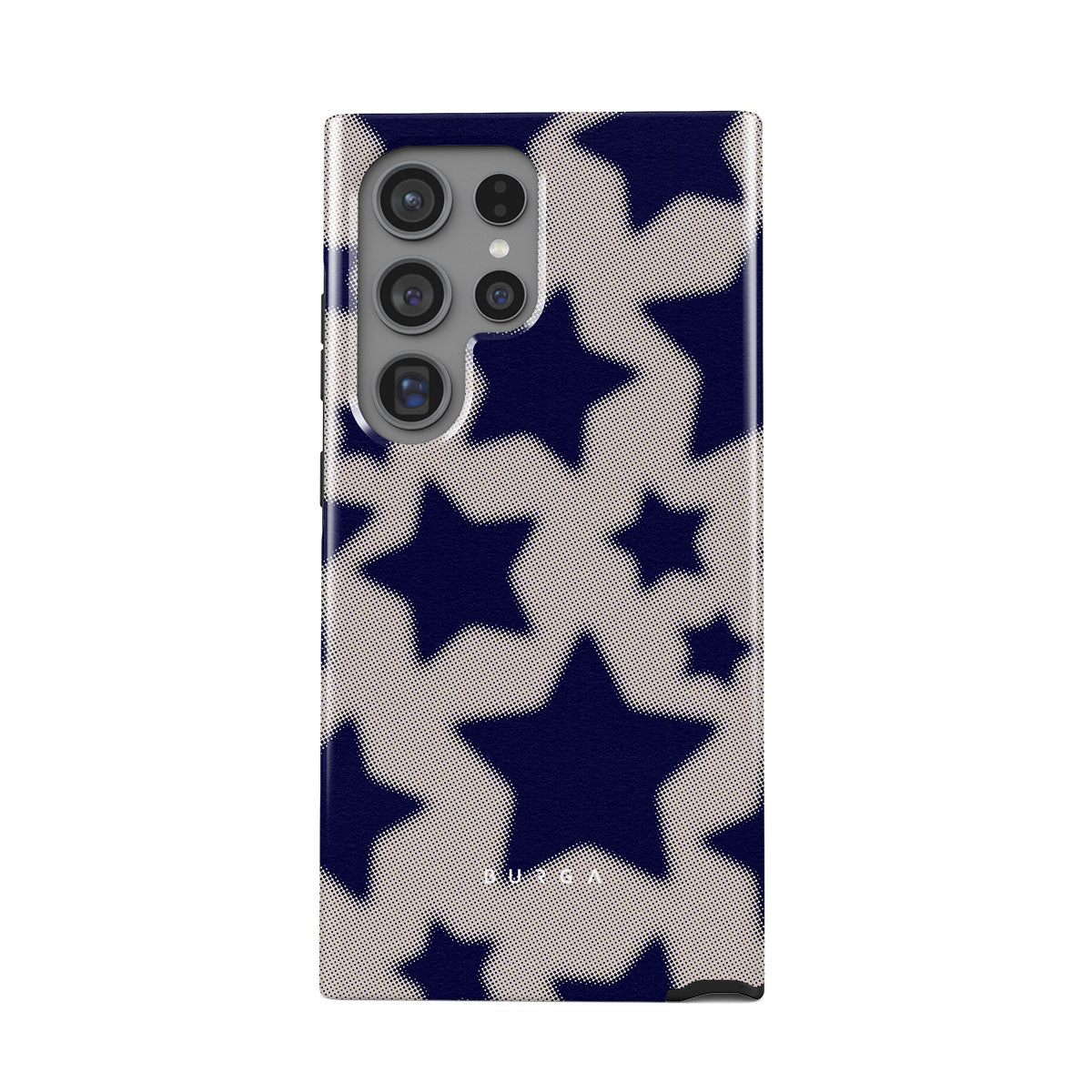 Rock a touch of '90s nostalgia with the Starstruck Samsung Galaxy S24 Ultra phone case design. Its nude background is scattered with bold blue stars; each star hints at stories of hope and youthful dreams, blending simplicity with depth.