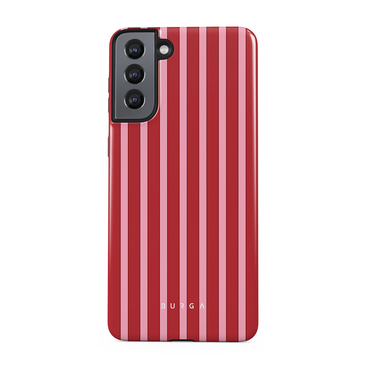 Stripes of red, like strawberry swirls on toast, this Samsung Galaxy S21 phone case design brings the sweet memory of breakfasts that start with a spread of homemade love.