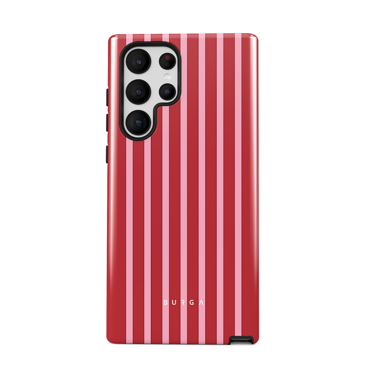 Stripes of red, like strawberry swirls on toast, this Samsung Galaxy S22 Ultra phone case design brings the sweet memory of breakfasts that start with a spread of homemade love.