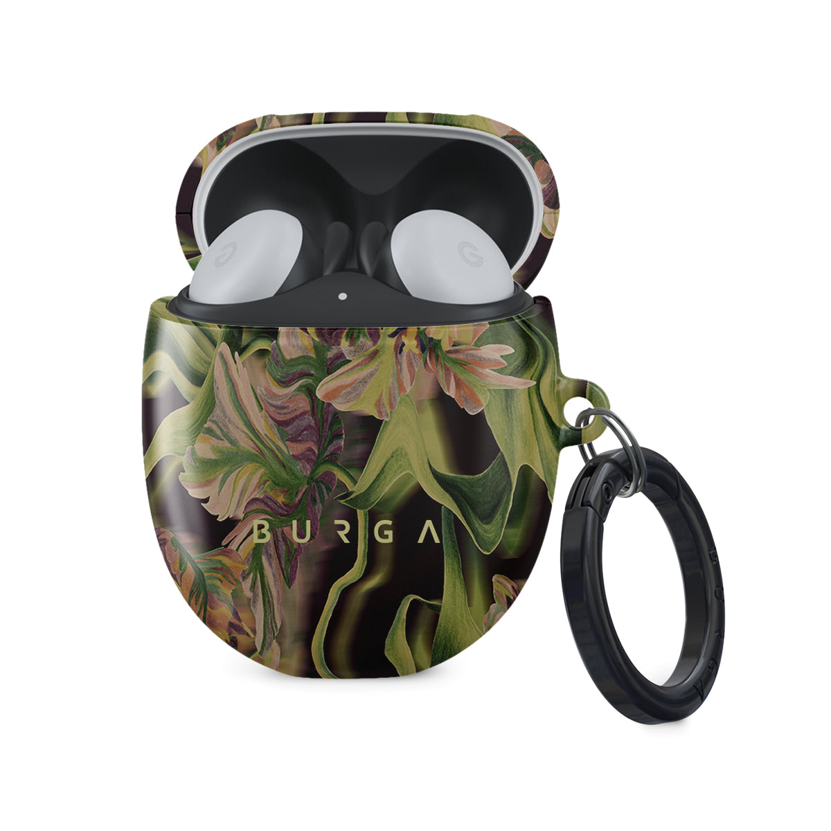 Let's wander into the world of humidity, fog, and deep green color. Our Subtropical Google Pixel Buds 2 case cover will add that exotic touch to your life. The flower pattern is as clear as it seems to be melting away. The purple and orange shades in the flowers will add that subtle splash of color to your style without being too provocative.