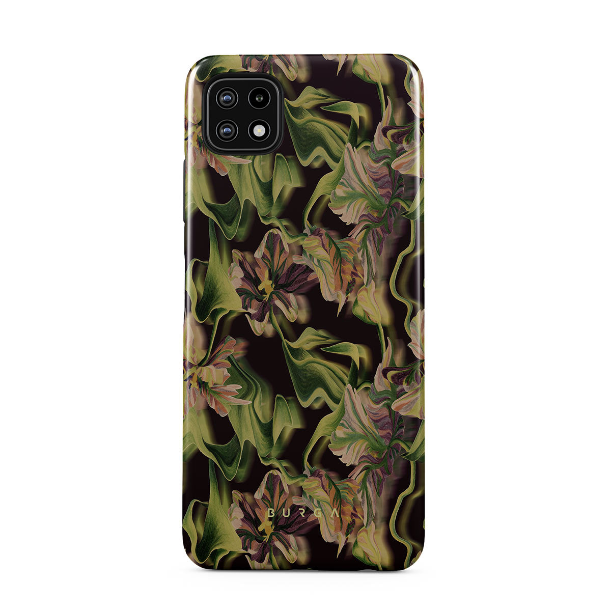 Let's wander into the world of humidity, fog, and deep green color. Our Subtropical Samsung Galaxy A22 5G phone case will add that exotic touch to your life. The flower pattern is as clear as it seems to be melting away. The purple and orange shades in the flowers will add that subtle splash of color to your style without being too provocative.