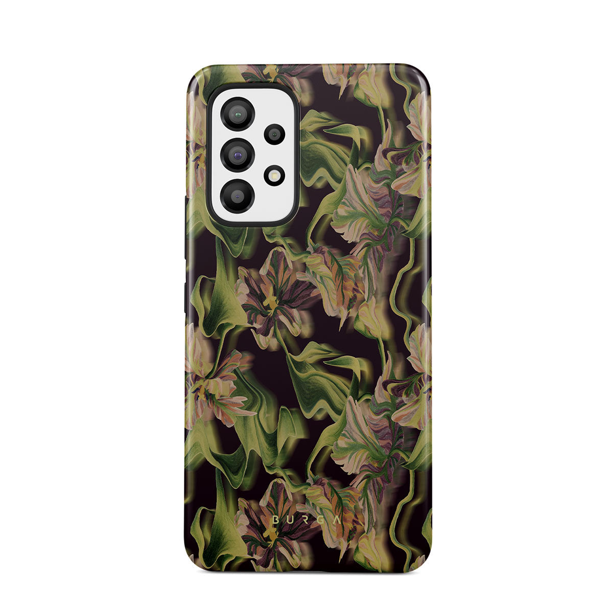 Let's wander into the world of humidity, fog, and deep green color. Our Subtropical Samsung Galaxy A53 phone case will add that exotic touch to your life. The flower pattern is as clear as it seems to be melting away. The purple and orange shades in the flowers will add that subtle splash of color to your style without being too provocative.