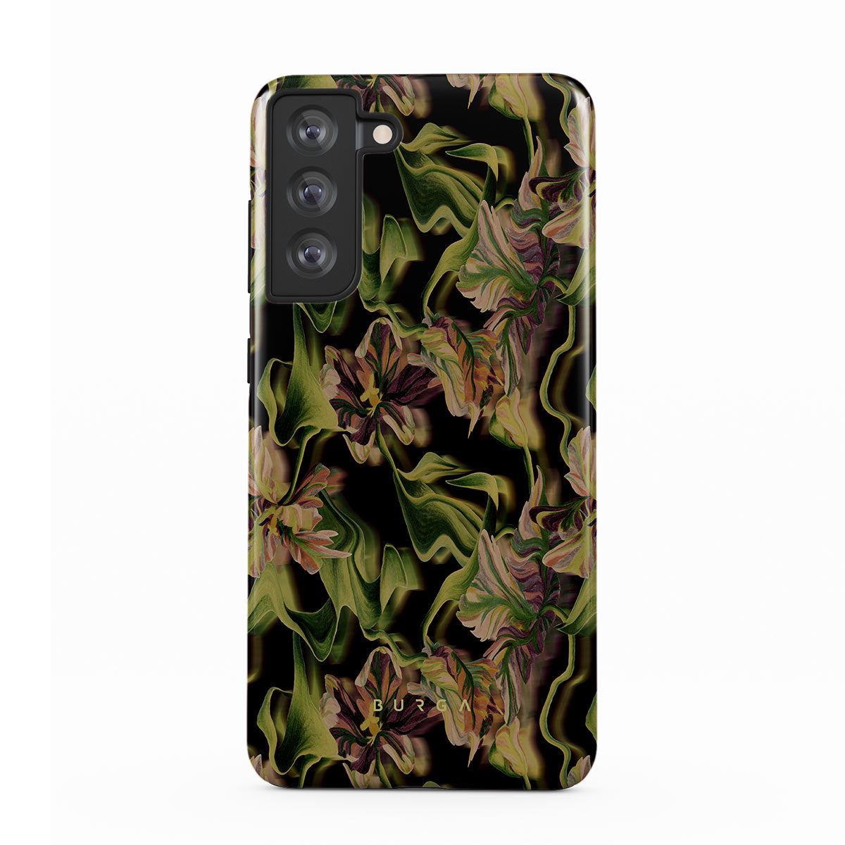 Let's wander into the world of humidity, fog, and deep green color. Our Subtropical Samsung Galaxy S21 FE phone case will add that exotic touch to your life. The flower pattern is as clear as it seems to be melting away. The purple and orange shades in the flowers will add that subtle splash of color to your style without being too provocative.