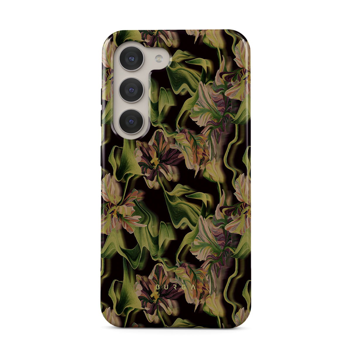 Let's wander into the world of humidity, fog, and deep green color. Our Subtropical Samsung Galaxy S23 phone case will add that exotic touch to your life. The flower pattern is as clear as it seems to be melting away. The purple and orange shades in the flowers will add that subtle splash of color to your style without being too provocative.