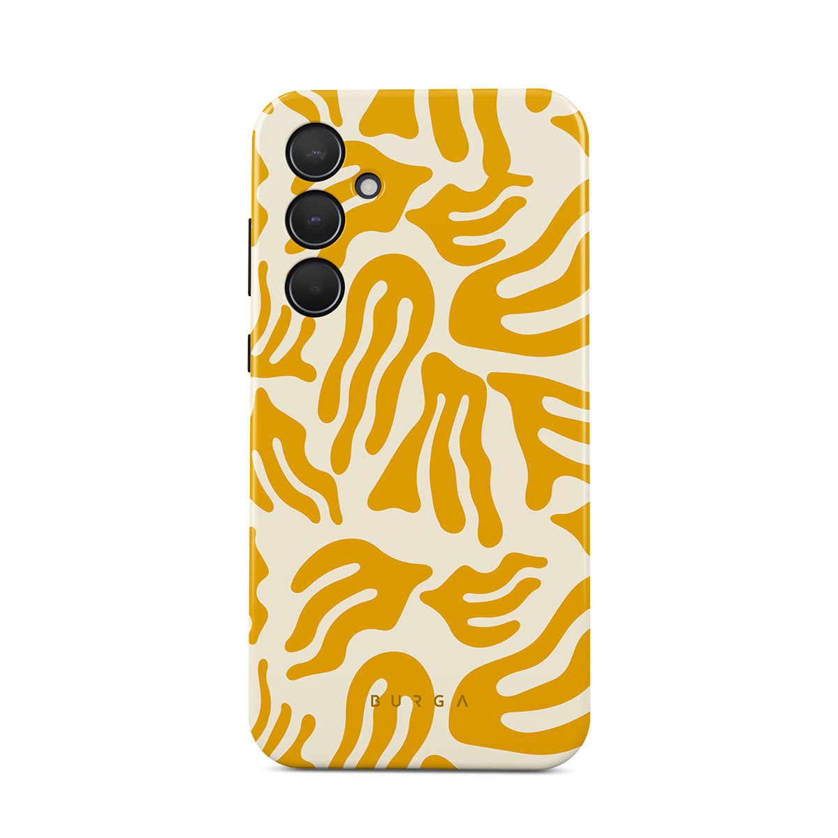 Cheerful and bursting with energy, the Sunbeams Samsung Galaxy A35 case captures the essence of a perfect summer day. The warm, golden tones and playful patterns create a sense of pure happiness and carefree fun. Our Sunbeams design will brighten up even the driest of days.