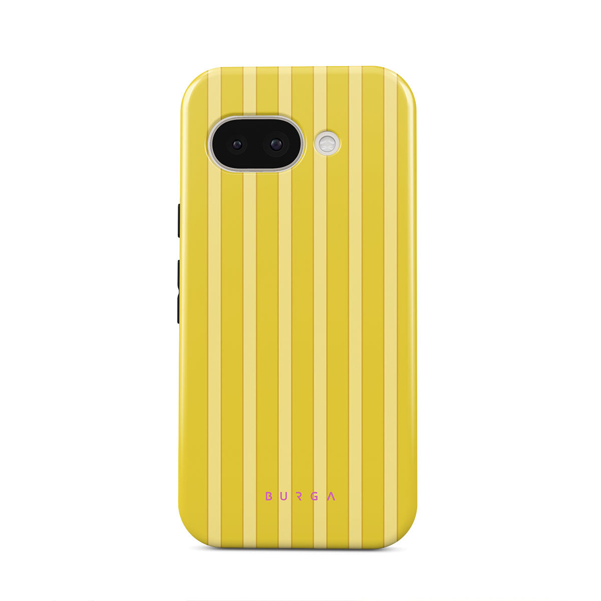 Bask in the glow of Sunbreak. This Google Pixel 9a phone case design features bold yellow stripes, reminiscent of beachside cabanas and sunny summer days. It’s a chic celebration of joy and simplicity.