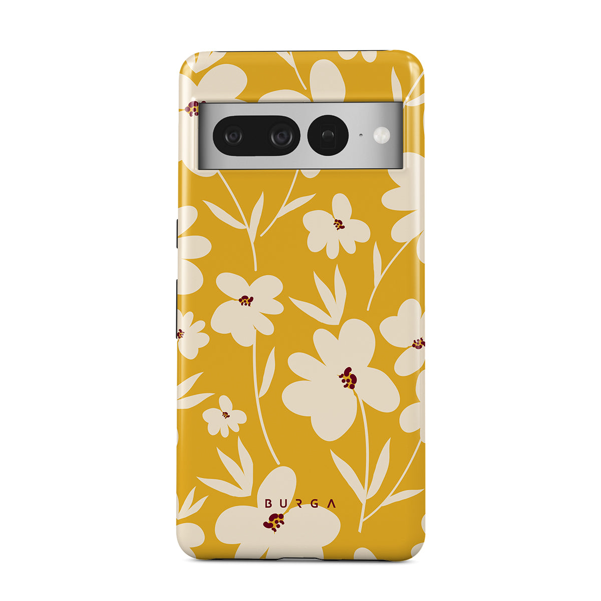 Full of fresh produce, warm rays of sunshine, and relaxing moments, our Sunday Market Google Pixel 7 Pro phone case encase all of this! The vintage mustard-yellow background with beautiful creme flowers will add that soft floral touch to your wardrobe while protecting your device from unexpected falls!