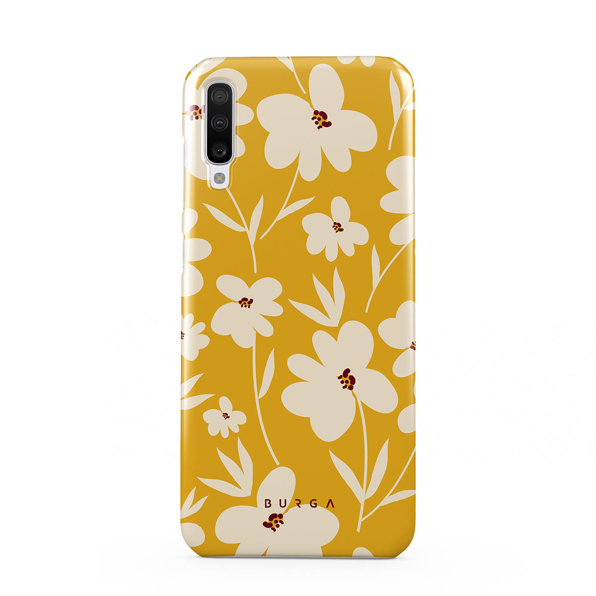 Full of fresh produce, warm rays of sunshine, and relaxing moments, our Sunday Market Samsung Galaxy A70 phone case encase all of this! The vintage mustard-yellow background with beautiful creme flowers will add that soft floral touch to your wardrobe while protecting your device from unexpected falls!