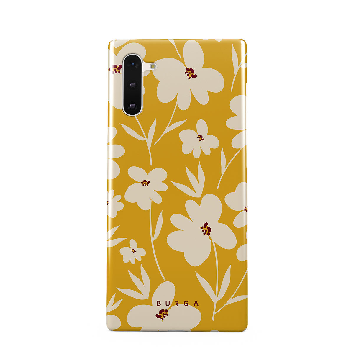 Full of fresh produce, warm rays of sunshine, and relaxing moments, our Sunday Market Samsung Galaxy Note 10 phone case encase all of this! The vintage mustard-yellow background with beautiful creme flowers will add that soft floral touch to your wardrobe while protecting your device from unexpected falls!