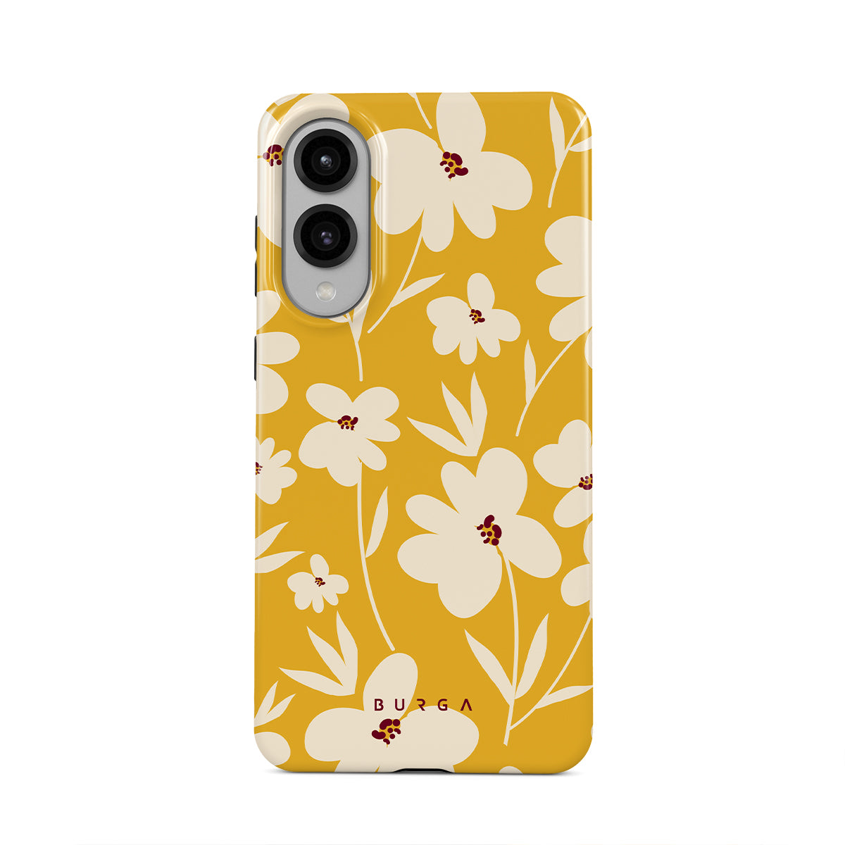 Full of fresh produce, warm rays of sunshine, and relaxing moments, our Sunday Market Samsung Galaxy S25 Edge phone case encase all of this! The vintage mustard-yellow background with beautiful creme flowers will add that soft floral touch to your wardrobe while protecting your device from unexpected falls!