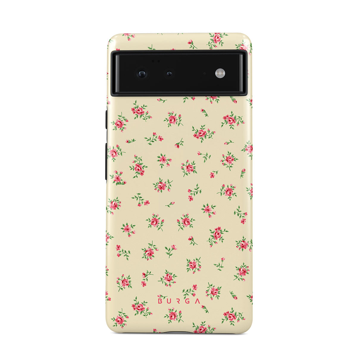 A daydream of soft pink petals on creamy yellow, reminiscent of that perfect light dress, twirling in the golden light of a lazy afternoon—that’s the Sundress Google Pixel 6 phone case design.