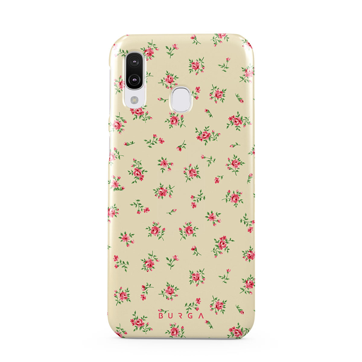 A daydream of soft pink petals on creamy yellow, reminiscent of that perfect light dress, twirling in the golden light of a lazy afternoon—that’s the Sundress Samsung Galaxy A40 phone case design.