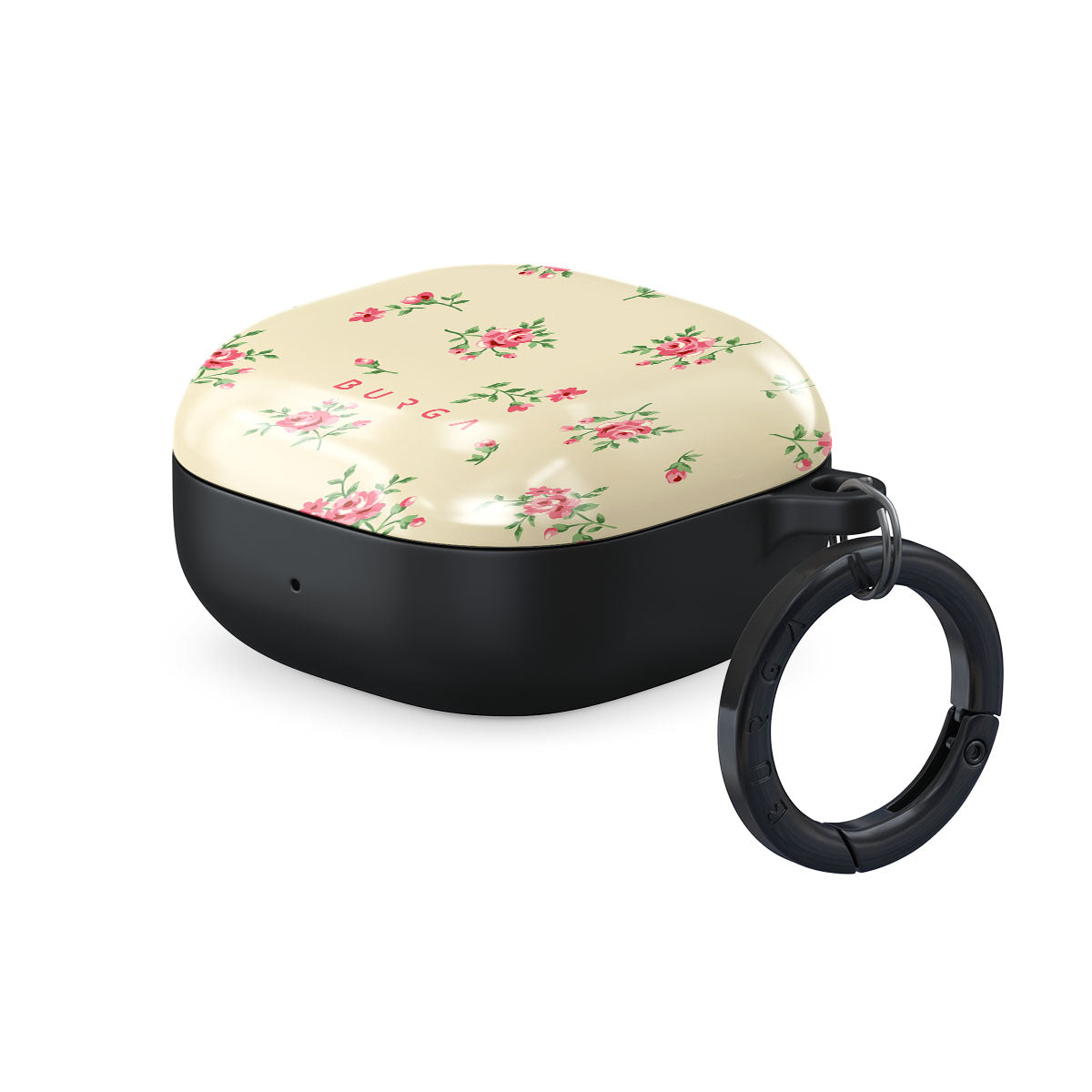 A daydream of soft pink petals on creamy yellow, reminiscent of that perfect light dress, twirling in the golden light of a lazy afternoon—that’s the Sundress Samsung Galaxy Buds 2 case cover design.
