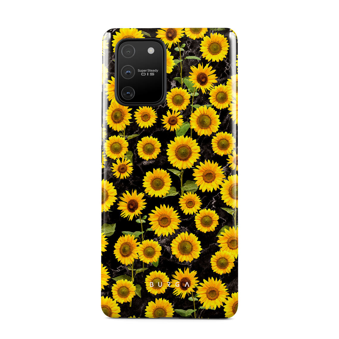 With our Sunflower Glimmer Samsung Galaxy S10 Lite phone case, you can have a bit of sunshine in your pocket. Let the flower pattern bring inspiration and warmth to your everyday life, and also, do not forget the ultimate plus: heavy-duty protection that our case offers for your phone!