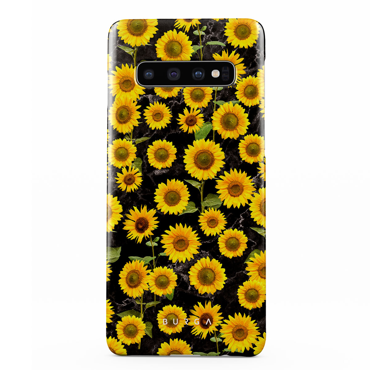 With our Sunflower Glimmer Samsung Galaxy S10 Plus phone case, you can have a bit of sunshine in your pocket. Let the flower pattern bring inspiration and warmth to your everyday life, and also, do not forget the ultimate plus: heavy-duty protection that our case offers for your phone!