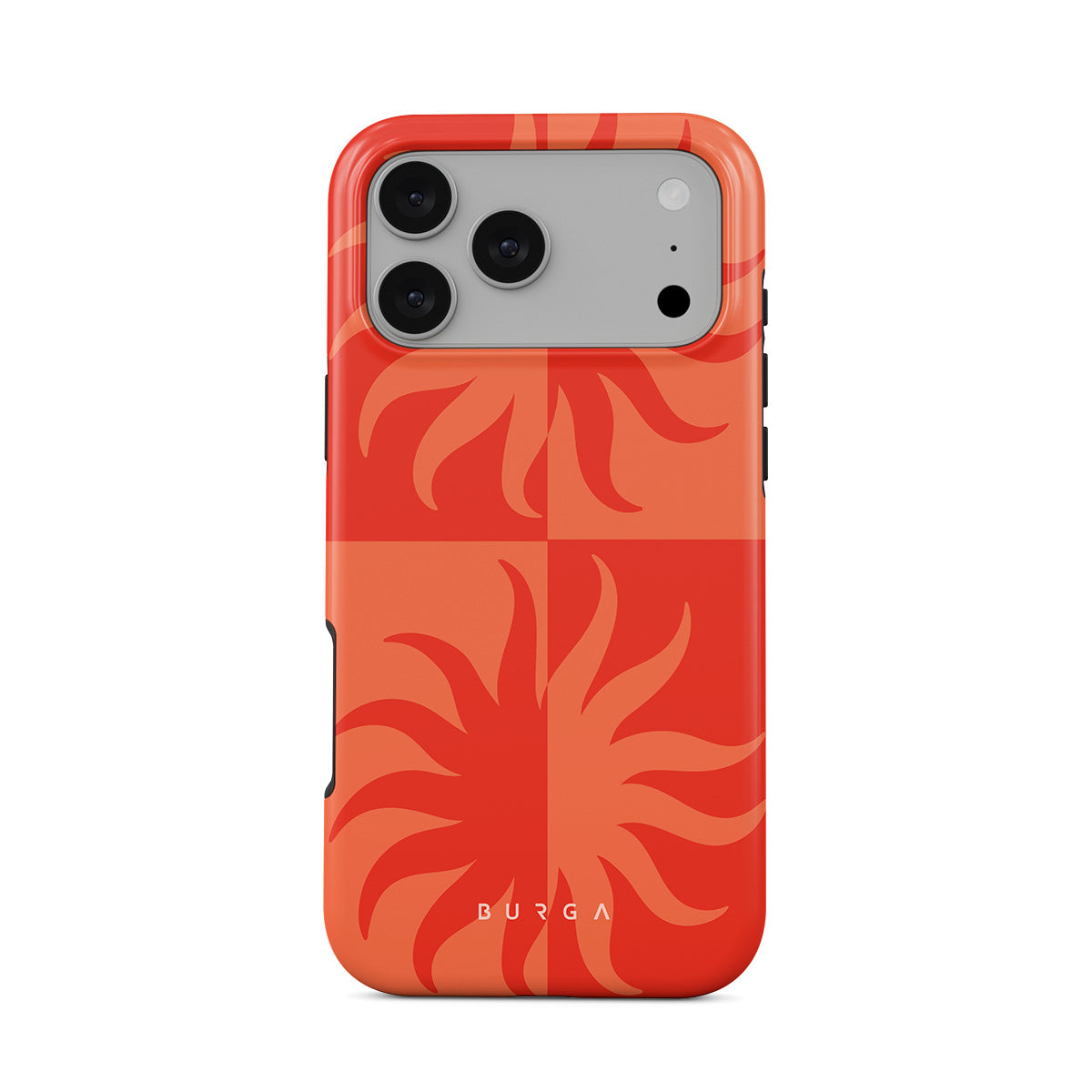 Feel the warmth with this fiery orange iPhone 17 Pro Max phone case design adorned with bold, radiant hues. Sunkissed captures the vibrant energy of sun-drenched days and the intense beauty of a tropical paradise. Perfect for those who love to stand out.