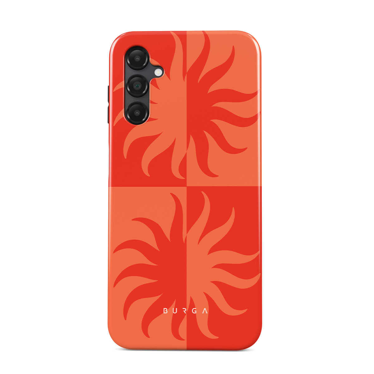 Feel the warmth with this fiery orange Samsung Galaxy A14 5G phone case design adorned with bold, radiant hues. Sunkissed captures the vibrant energy of sun-drenched days and the intense beauty of a tropical paradise. Perfect for those who love to stand out.
