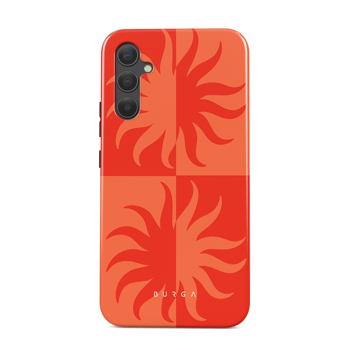Feel the warmth with this fiery orange Samsung Galaxy A34 phone case design adorned with bold, radiant hues. Sunkissed captures the vibrant energy of sun-drenched days and the intense beauty of a tropical paradise. Perfect for those who love to stand out.