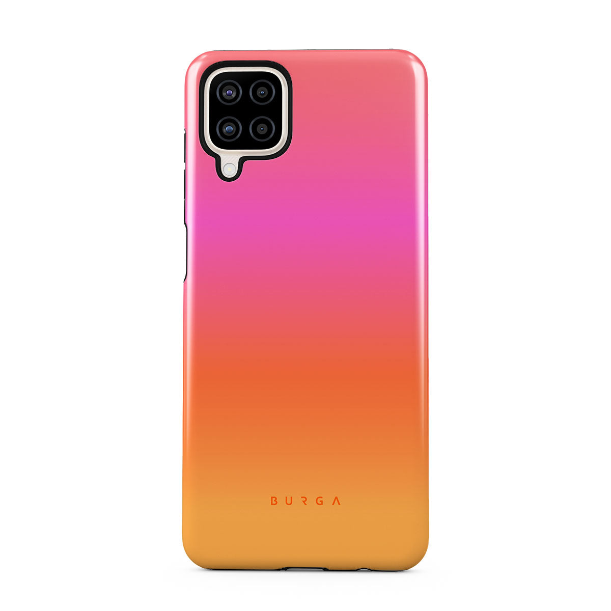 This Sunset Club Samsung Galaxy A12 4G phone case captures the mesmerizing hues of a fading sun, blending fiery oranges and passionate pinks that dance like the horizon at dusk. It's an everyday tribute to the light’s farewell kiss.