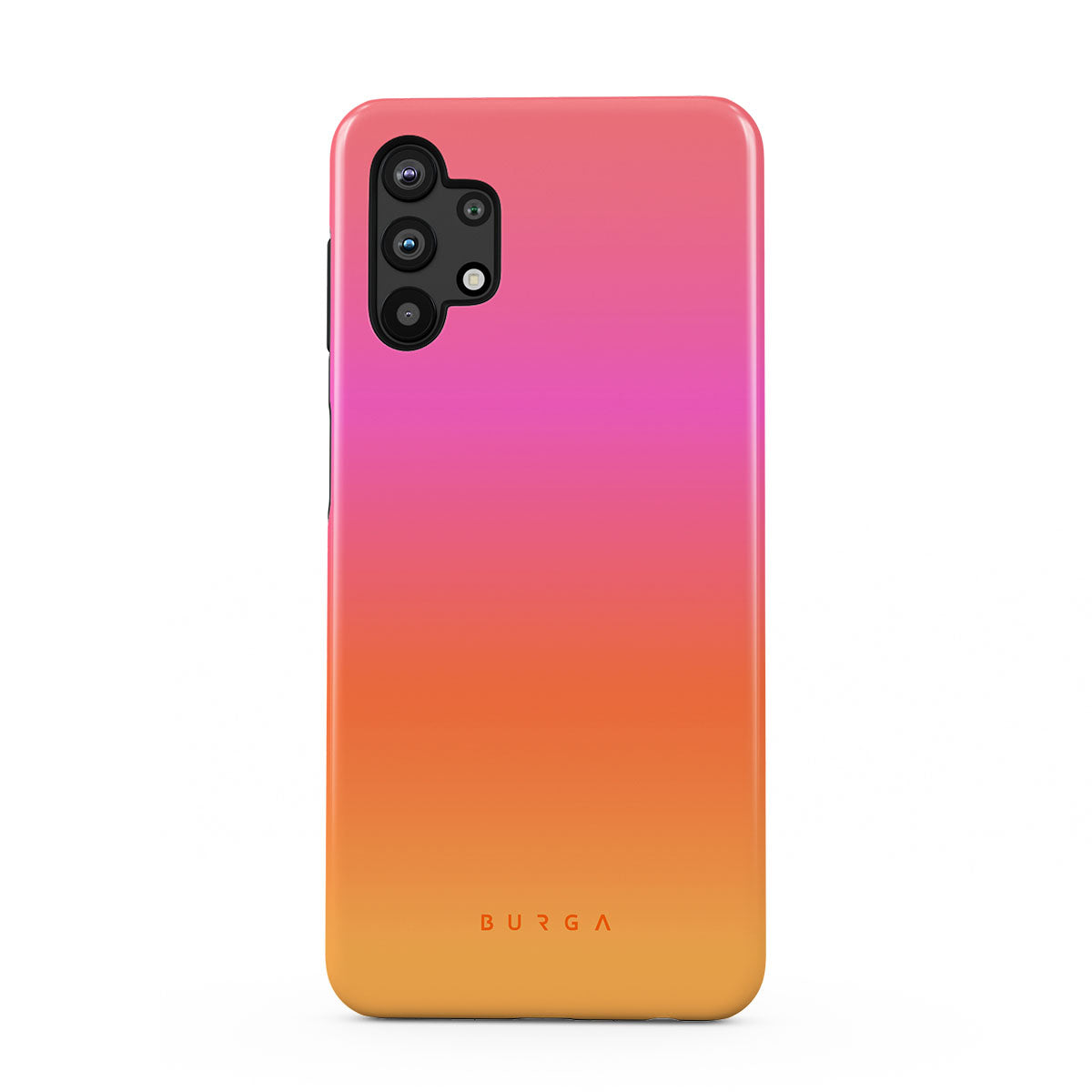 This Sunset Club Samsung Galaxy A32 5G phone case captures the mesmerizing hues of a fading sun, blending fiery oranges and passionate pinks that dance like the horizon at dusk. It's an everyday tribute to the light’s farewell kiss.