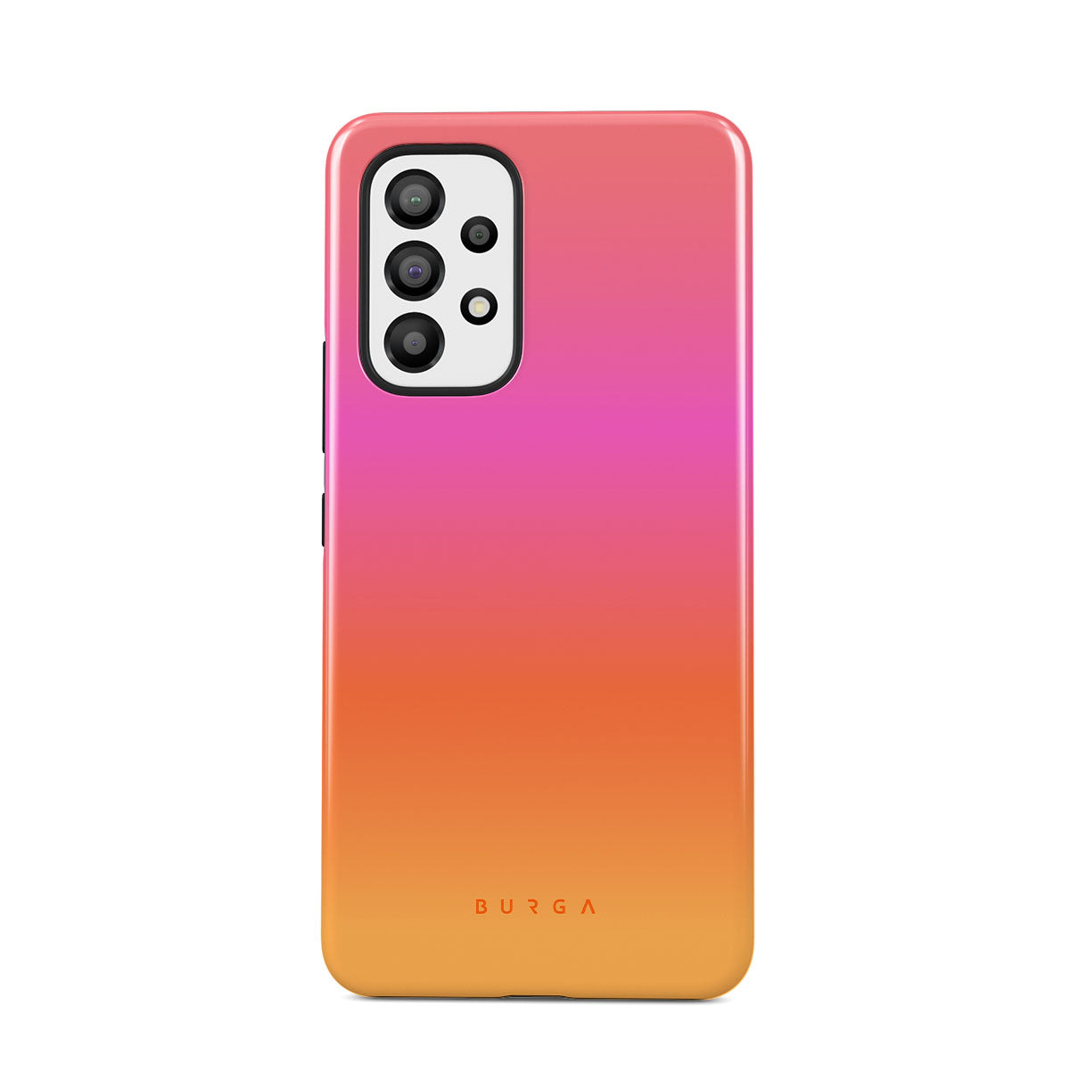 This Sunset Club Samsung Galaxy A53 phone case captures the mesmerizing hues of a fading sun, blending fiery oranges and passionate pinks that dance like the horizon at dusk. It's an everyday tribute to the light’s farewell kiss.