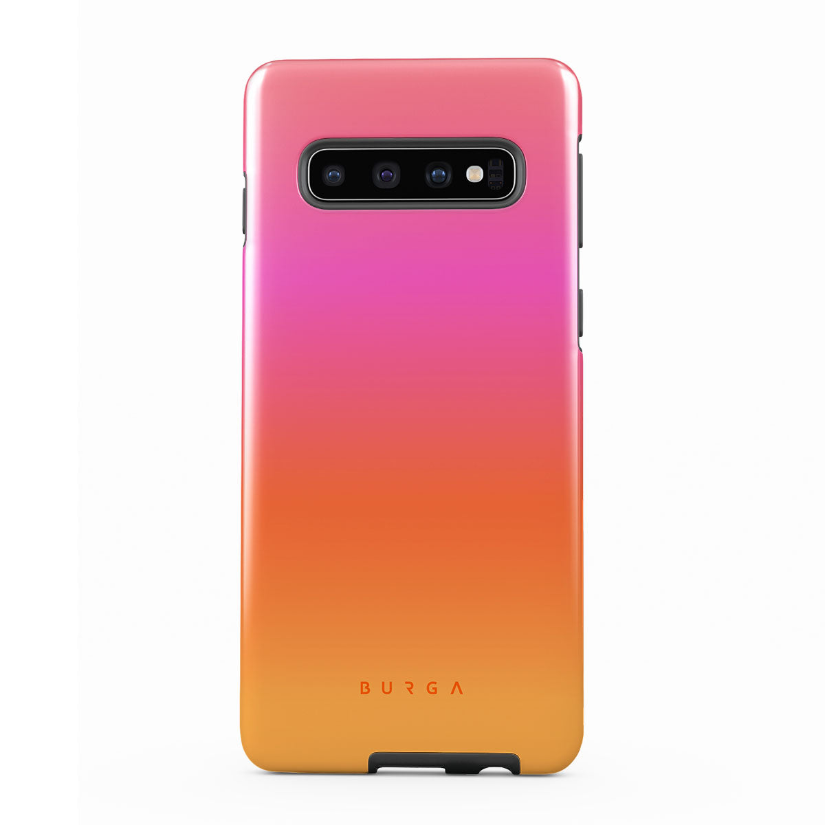This Sunset Club Samsung Galaxy S10 4G phone case captures the mesmerizing hues of a fading sun, blending fiery oranges and passionate pinks that dance like the horizon at dusk. It's an everyday tribute to the light’s farewell kiss.