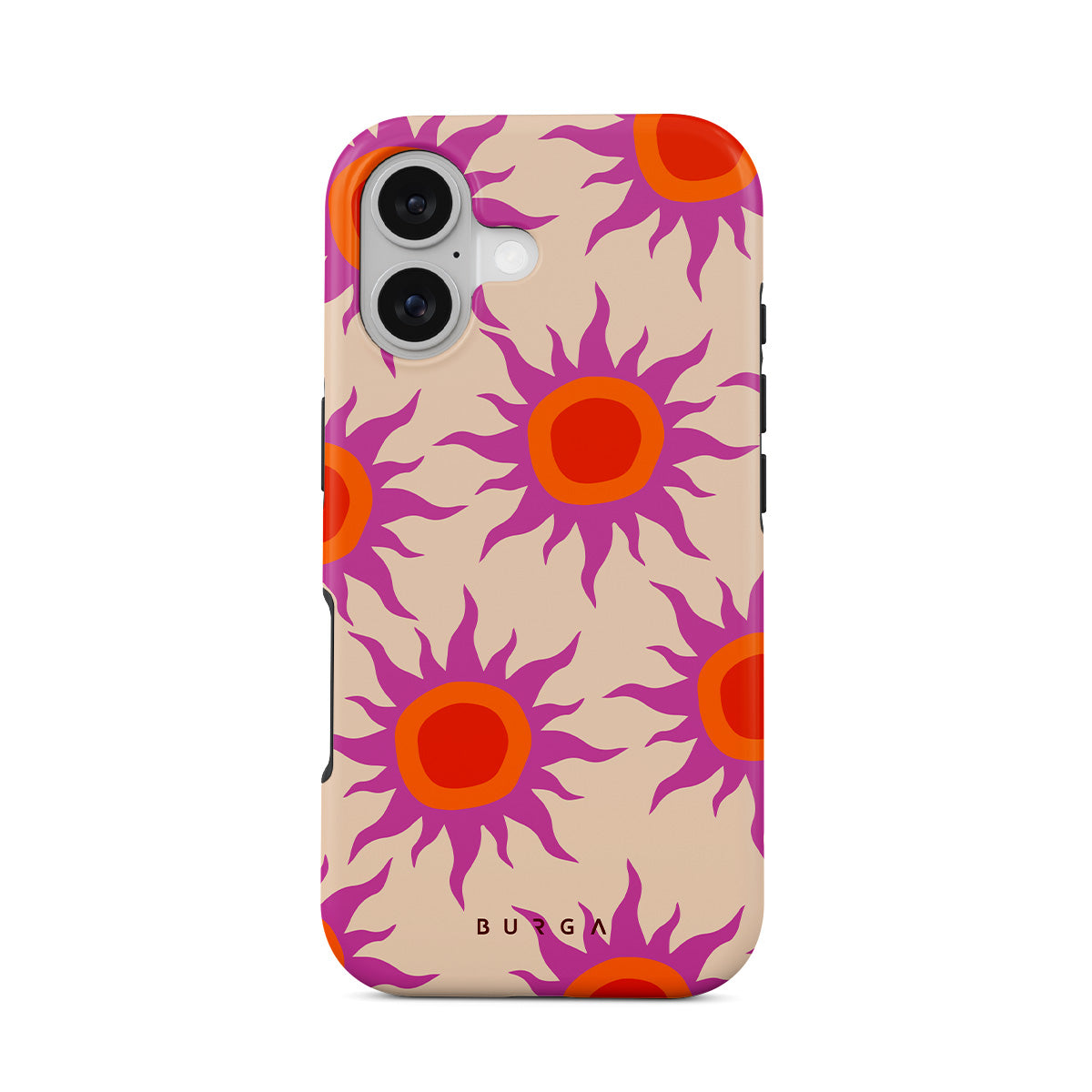Discover the radiant serenity of the Sunset Glow design, a harmonious blend of soothing pastels and fiery suns. Vivacious viva magenta rays add a playful touch, perfectly balancing tranquility and dynamism. More than just a fashion accessory, this striking iPhone 17 phone case mirrors your unique personality and zest for life.