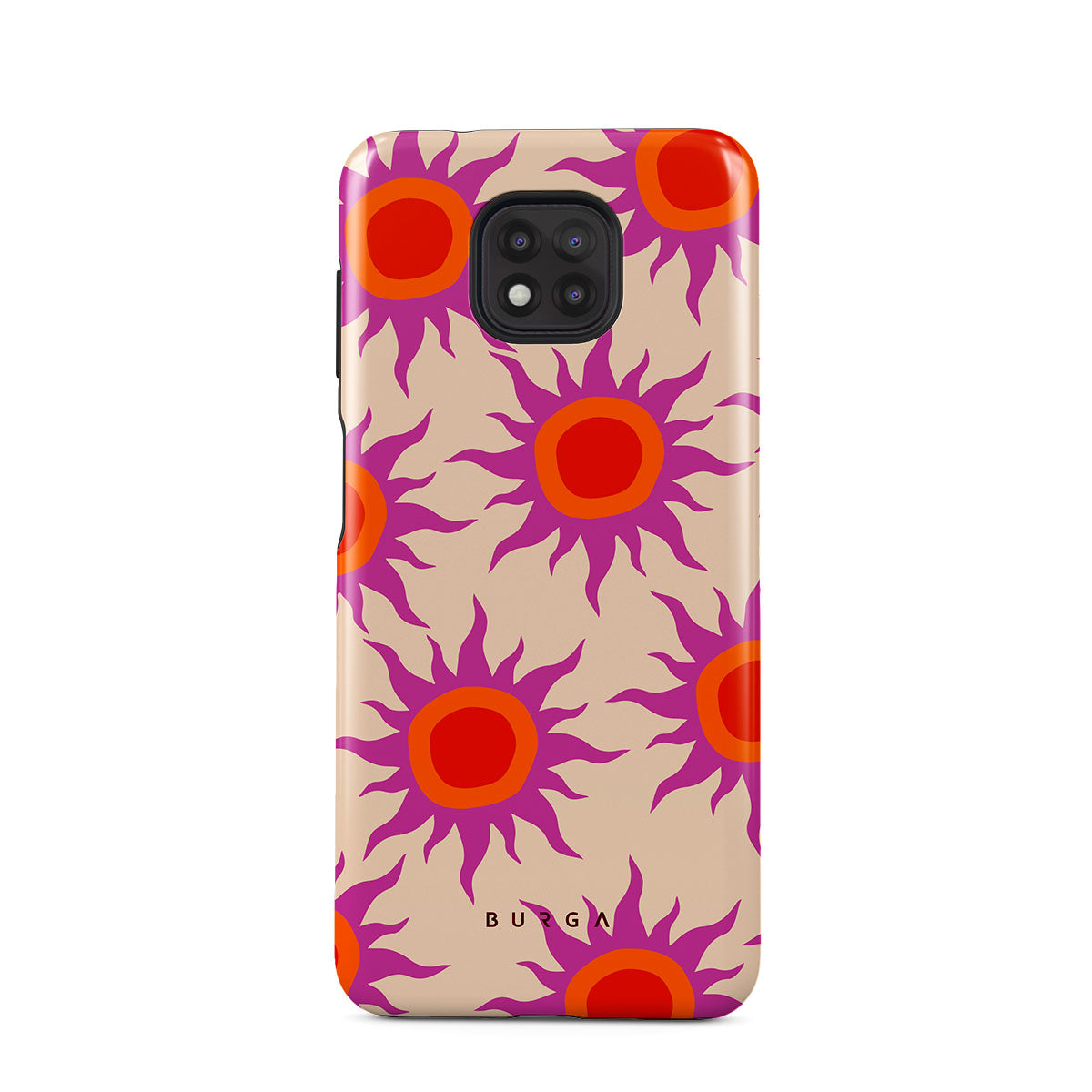 Discover the radiant serenity of the Sunset Glow design, a harmonious blend of soothing pastels and fiery suns. Vivacious viva magenta rays add a playful touch, perfectly balancing tranquility and dynamism. More than just a fashion accessory, this striking Motorola Moto G Power 2021 phone case mirrors your unique personality and zest for life.