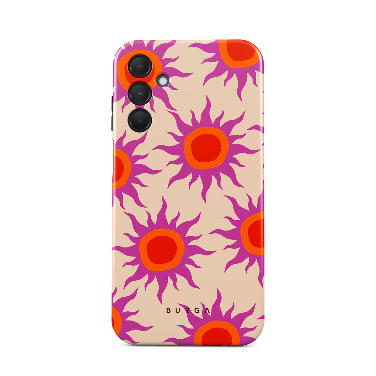 Discover the radiant serenity of the Sunset Glow design, a harmonious blend of soothing pastels and fiery suns. Vivacious viva magenta rays add a playful touch, perfectly balancing tranquility and dynamism. More than just a fashion accessory, this striking Samsung Galaxy A15 4G / 5G phone case mirrors your unique personality and zest for life.