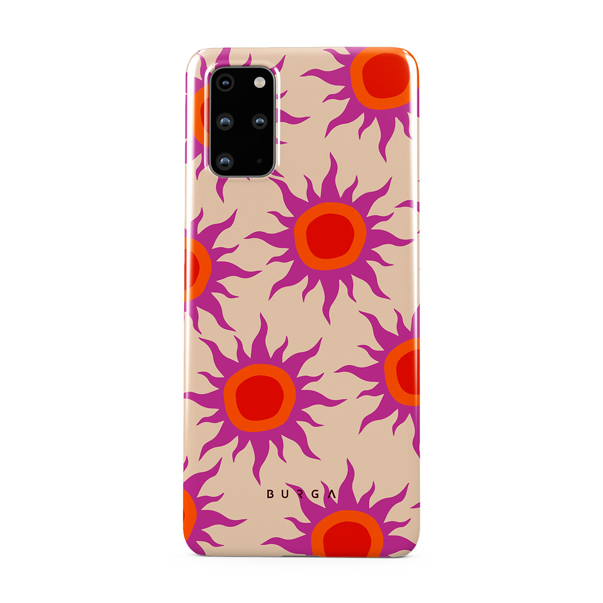 Discover the radiant serenity of the Sunset Glow design, a harmonious blend of soothing pastels and fiery suns. Vivacious viva magenta rays add a playful touch, perfectly balancing tranquility and dynamism. More than just a fashion accessory, this striking Samsung Galaxy S20 Plus 4G / 5G phone case mirrors your unique personality and zest for life.