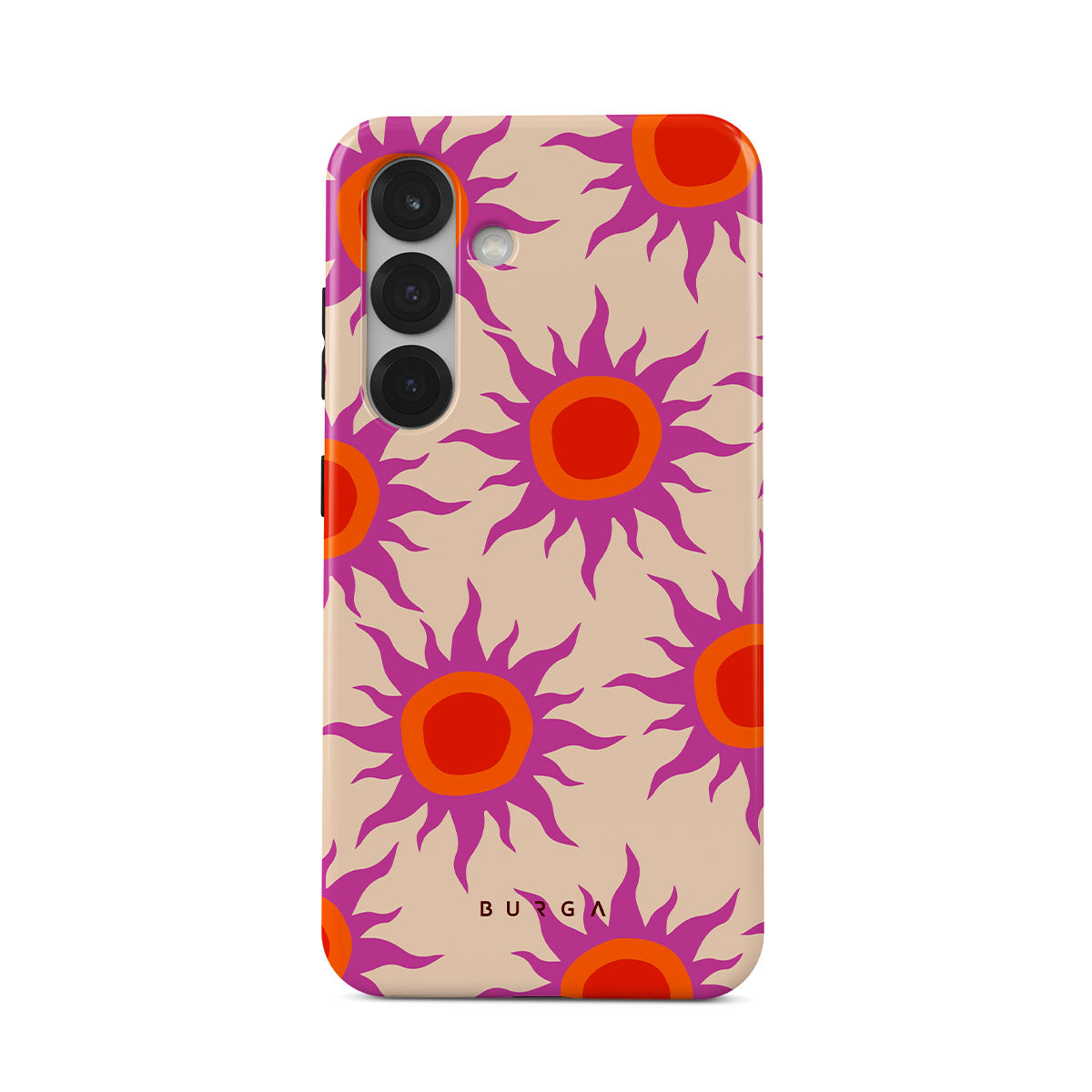 Discover the radiant serenity of the Sunset Glow design, a harmonious blend of soothing pastels and fiery suns. Vivacious viva magenta rays add a playful touch, perfectly balancing tranquility and dynamism. More than just a fashion accessory, this striking Samsung Galaxy S25 phone case mirrors your unique personality and zest for life.